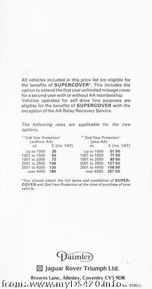 | The following leaflet, published for The Motor Show, October 1978 shows the limousine prices near the bottom of pg. 1. They are still the same as on the July price list shown above. |