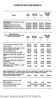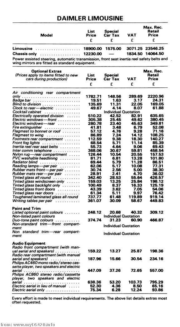 1979 obviously was a year with a very high inflation rate. The price of the limousine was now 6000 GB£ higher than it was a year before. And two more large increments were to follow before the year ended. This price list from 18th June 1979 has publication number 3190/O |