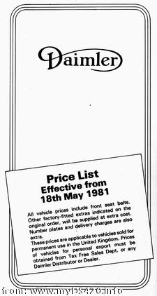 We show the Supercover and Saloon pages of two price lists together, to save space. Therefore, we have the front page and Limousine page of the second price list here first. The non-limousine pages will follow thereafter. This is the price list from the 13th April 1981, Publication No. 3190/U. |