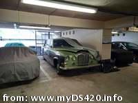 The new owner was David Taylor, participant in his family's wedding car business, where already more than a dozen DS420 cars, together with a large number of Vanden Plas, Rolls and Bentley cars earn their keep. Photos 16-21 show how the car was kissed awake at its underground parking place in London, and (photo 26) prepared for transport to its new home.
