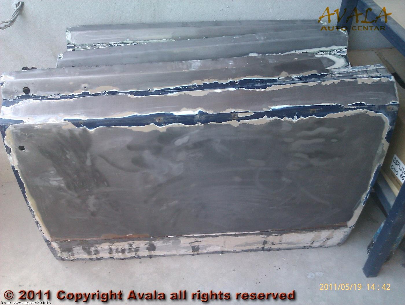 Doors (detached), sanded, except edges. Seen from outside. Note that the bottom part of the first door has been repaired before.