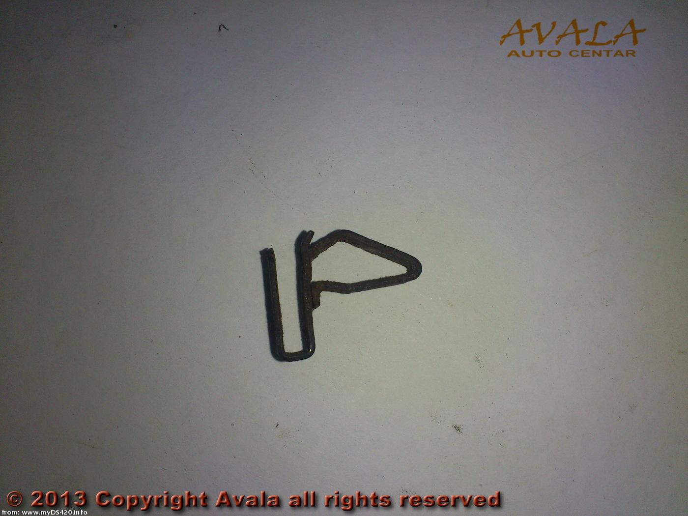 Clip for upholstery panels. Where the lozenge-shaped eye meets the U-shape, note the little "foot" where the lower arm of the lozenge touches the U. This foot is not attached to the U, but moves freely. When this clip is mounted properly, this "foot" should be positioned such that a flat tool can be inserted between uphostery panel and the fixed part of the body, and push against this foot (in this picture that would be in upward direction) such that the lozenge becomes somewhat smaller and pops out of the fixed body part where it was pushed in. Spare clips are easily obtainable, e.g. from BAS International.