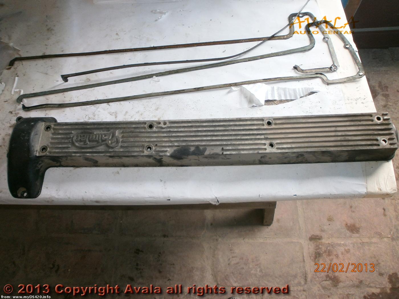 Cam cover with Daimler name, detached, with broken gaskets.