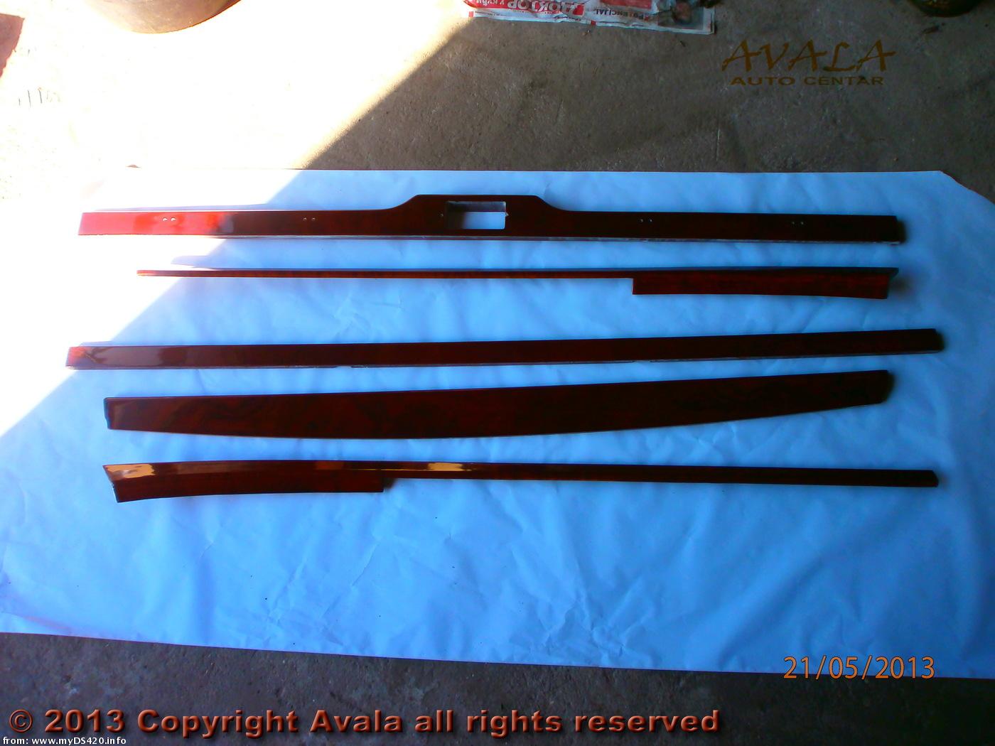 Many pieces of woodwork, re-venereed. The long piece in the middle is unique for cars with electric division. It is the division window sill. Cars with manually operated division windows (sliding) don't have it.