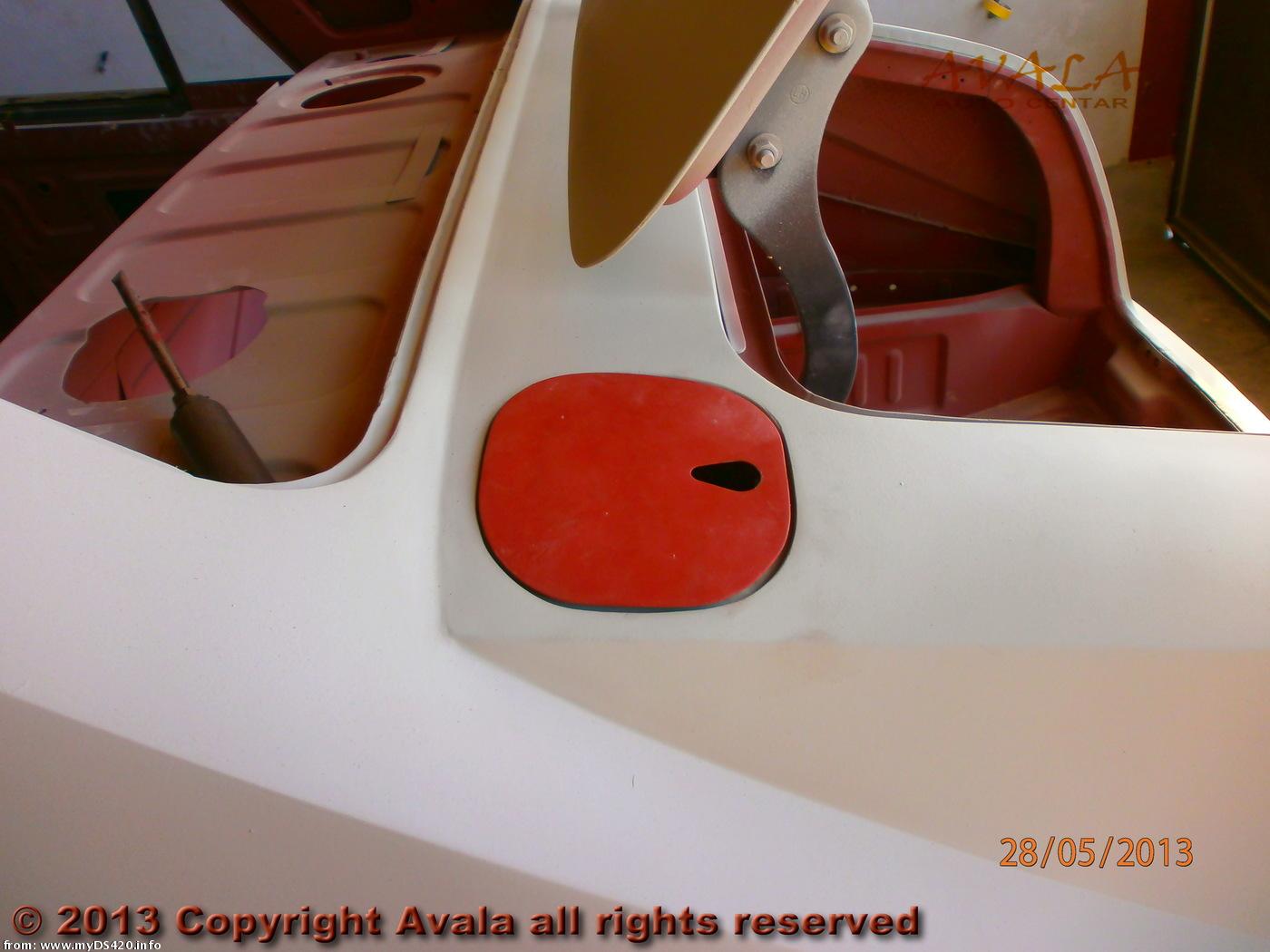 Left fuel filler flap installed. No lock yet.